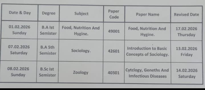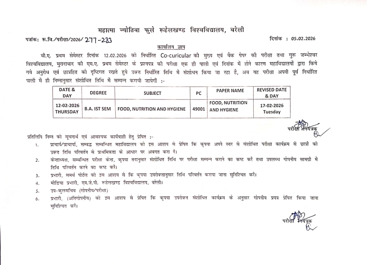 Read More...बी ए (फूड न्यूट्रीशन और हाइजीन) एग्जाम डेट चेंज
