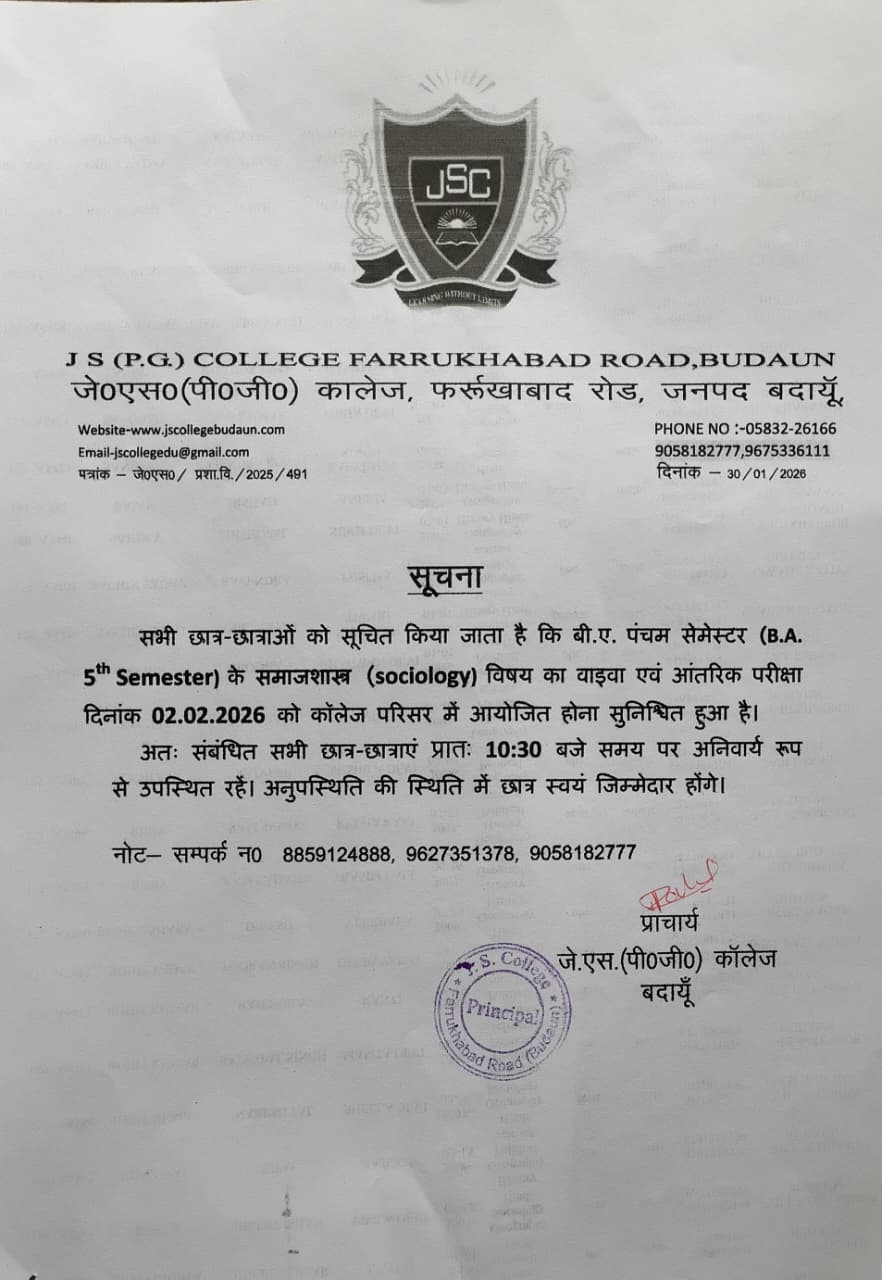 Read More...Political science 1,3,5 semester practical/viva on 14/02/2025