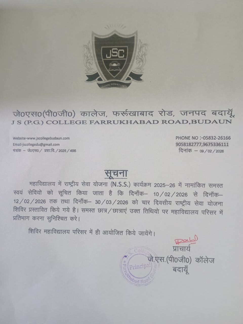Read More...महाविधालय द्वारा एन० ई० पी० 2020 से आच्छादित स्नातक पाठ्यक्रम मे विषय संशोधित किये जाने के सम्बन्ध में