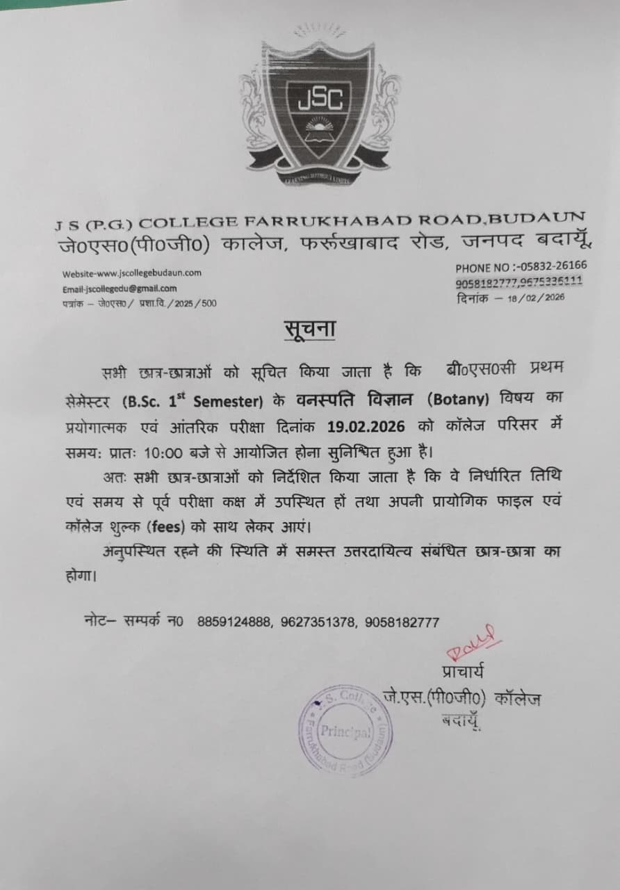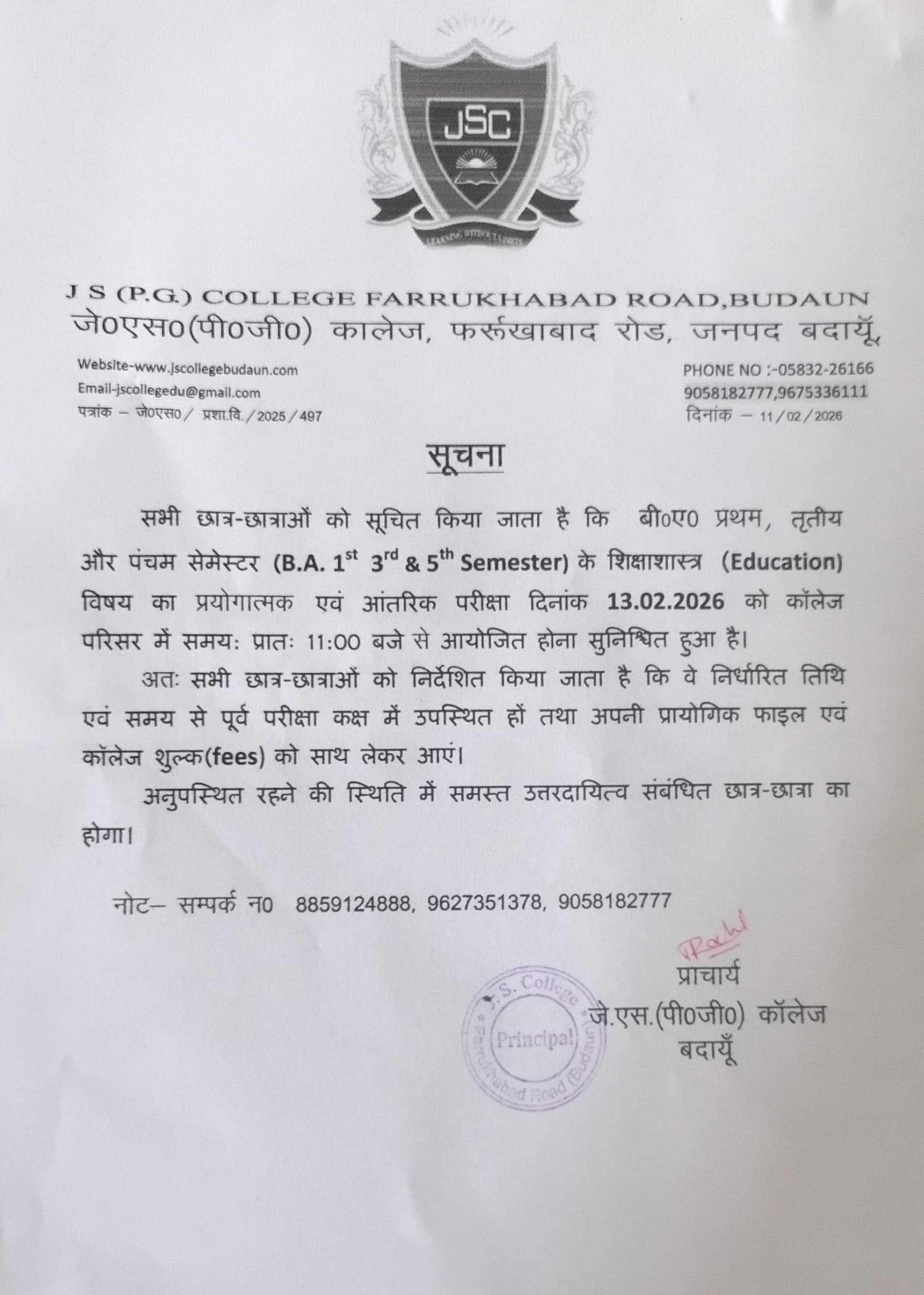 Read More...Education 1,3,5 semester practical/viva on 15/02/2025
