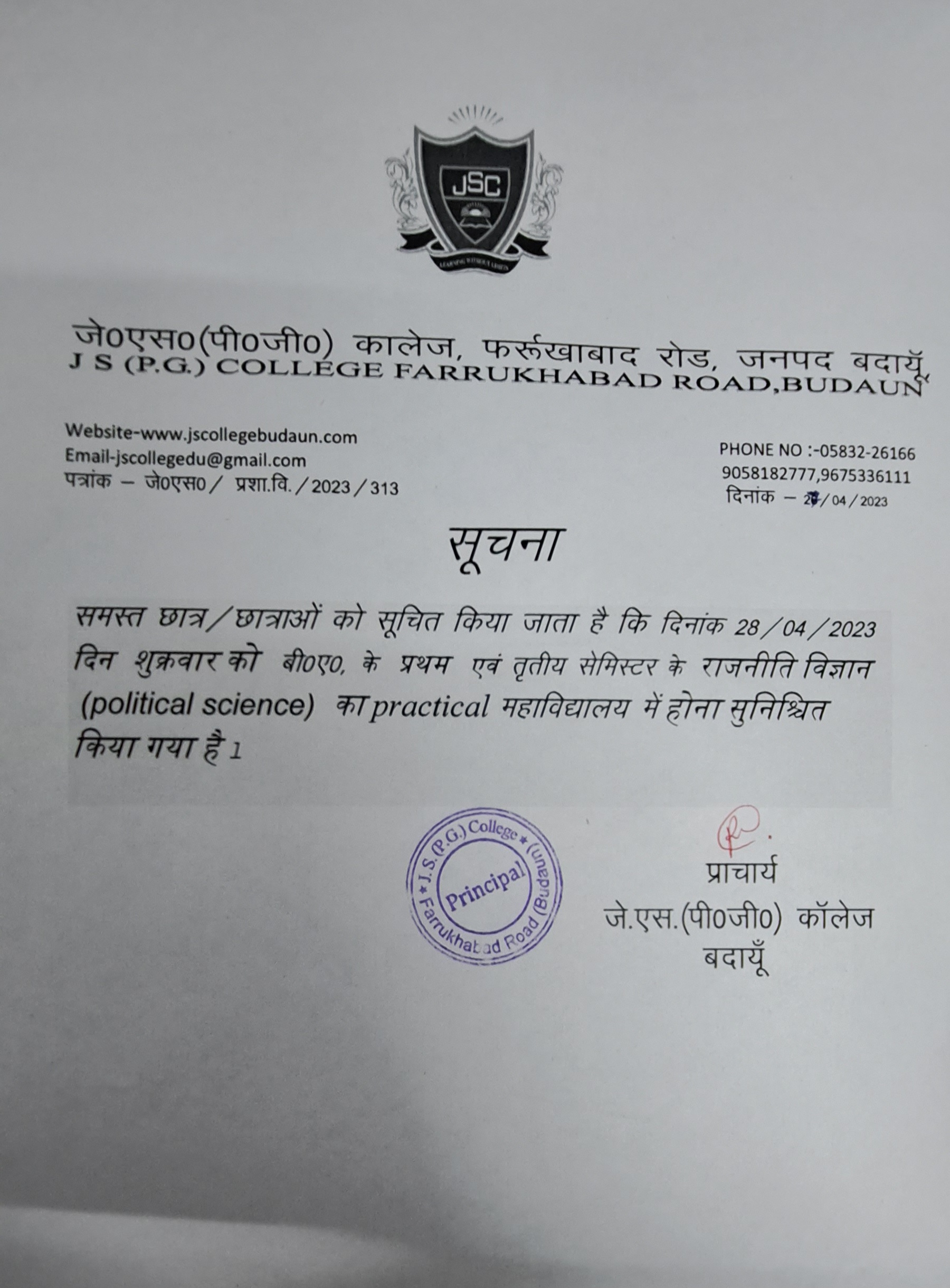 Read More...Political science 1,3,5 semester practical/viva on 14/02/2025