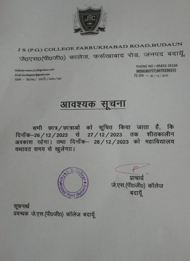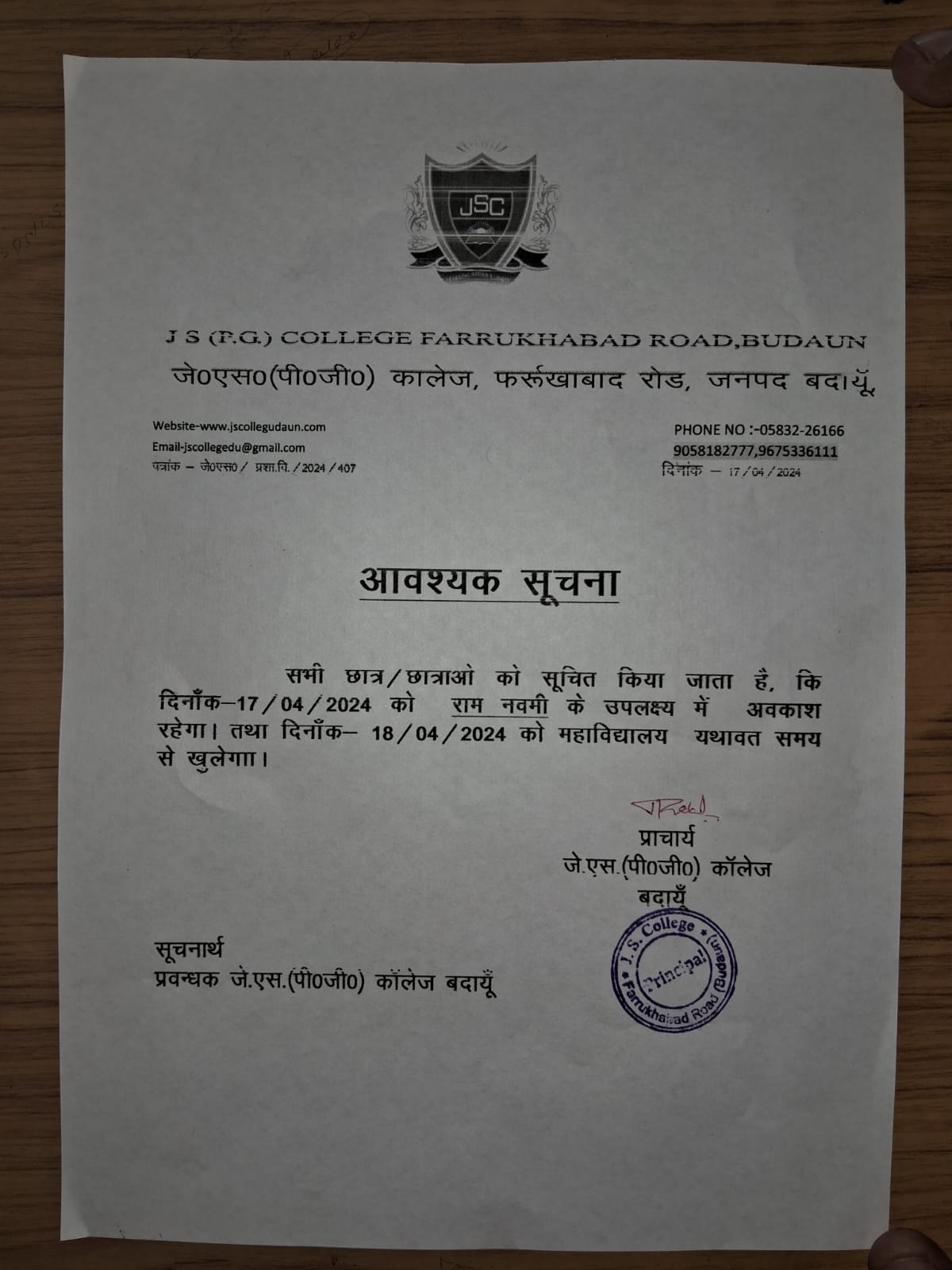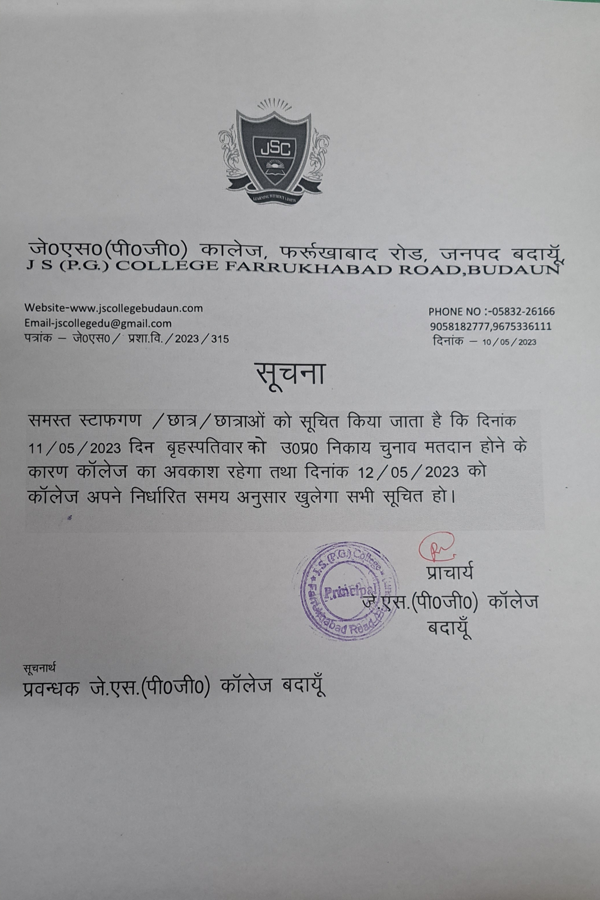 Read More...महाविधालय द्वारा एन० ई० पी० 2020 से आच्छादित स्नातक पाठ्यक्रम मे विषय संशोधित किये जाने के सम्बन्ध में