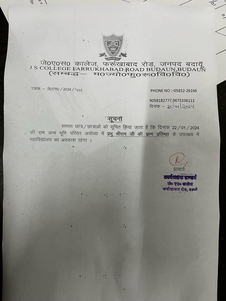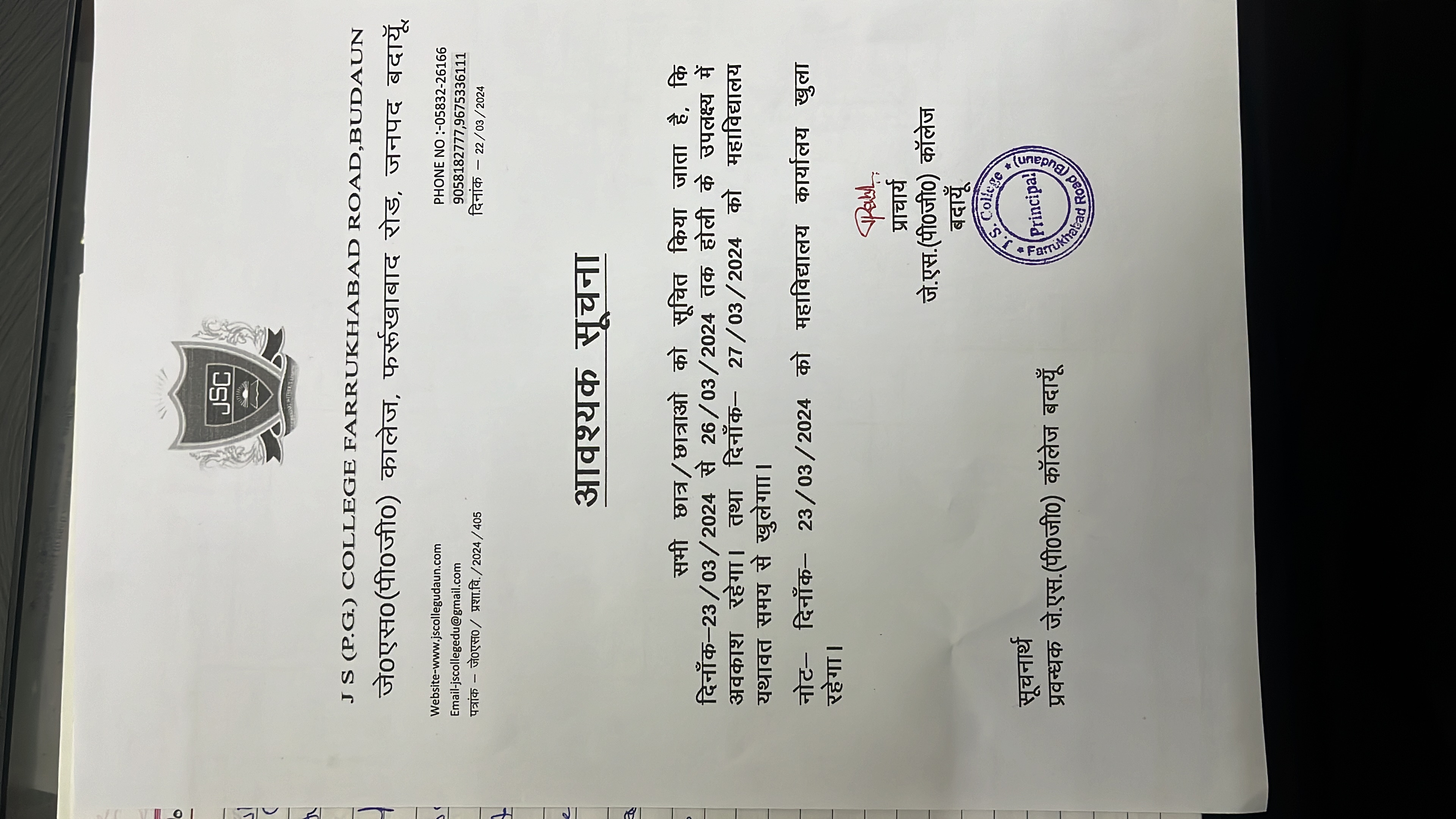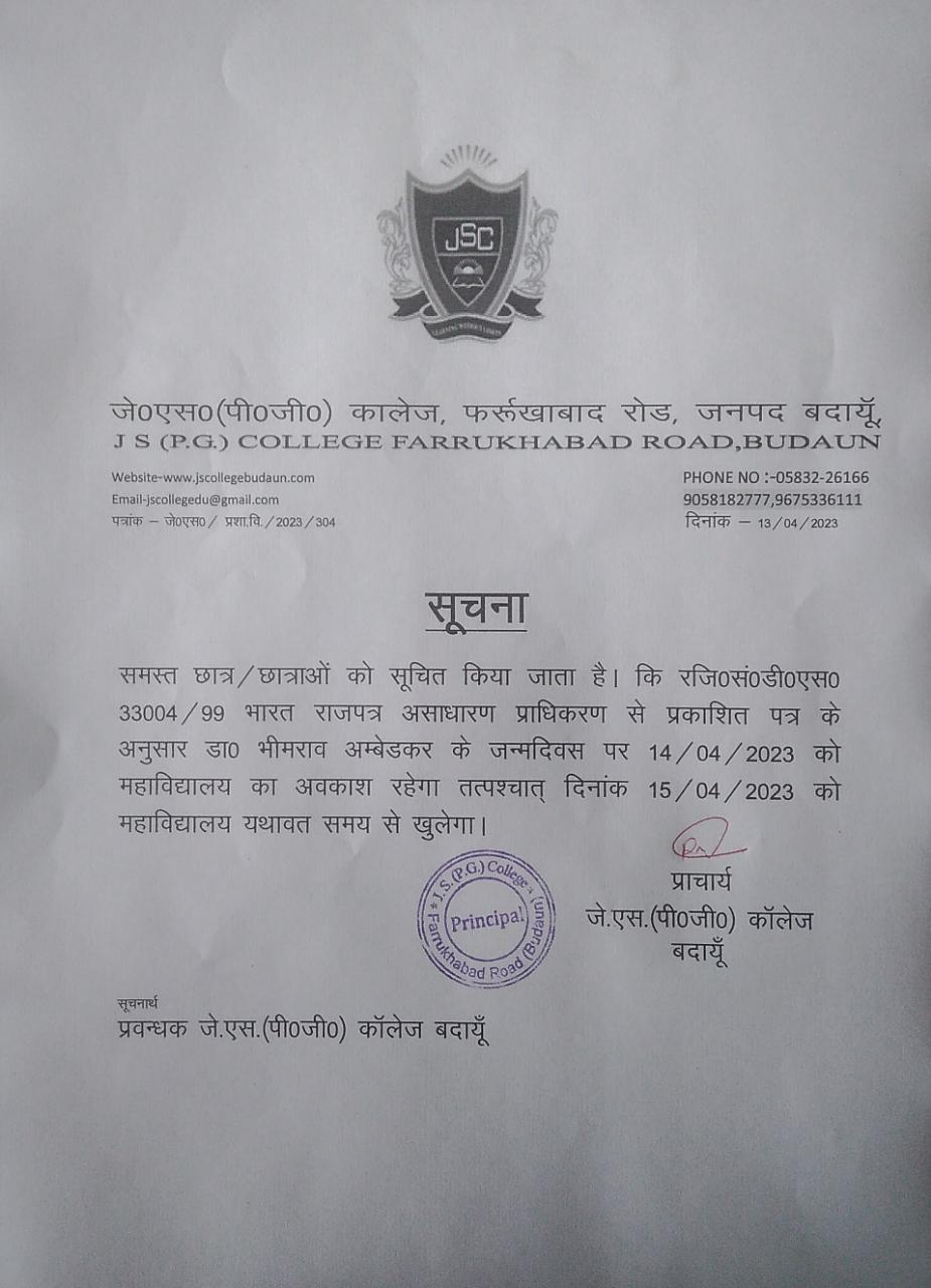 Read More...महाविधालय द्वारा एन० ई० पी० 2020 से आच्छादित स्नातक पाठ्यक्रम मे विषय संशोधित किये जाने के सम्बन्ध में
