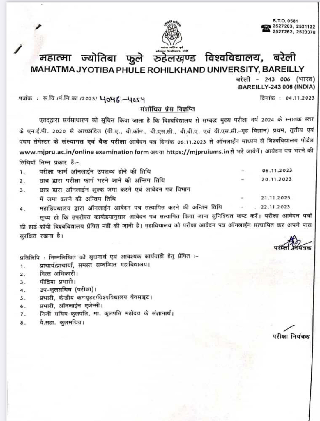 Read More...U.G. NEP-2020 1st , 3rd & 5th Semester & Back Paper Online Exam From Date Extended with Late Fees
