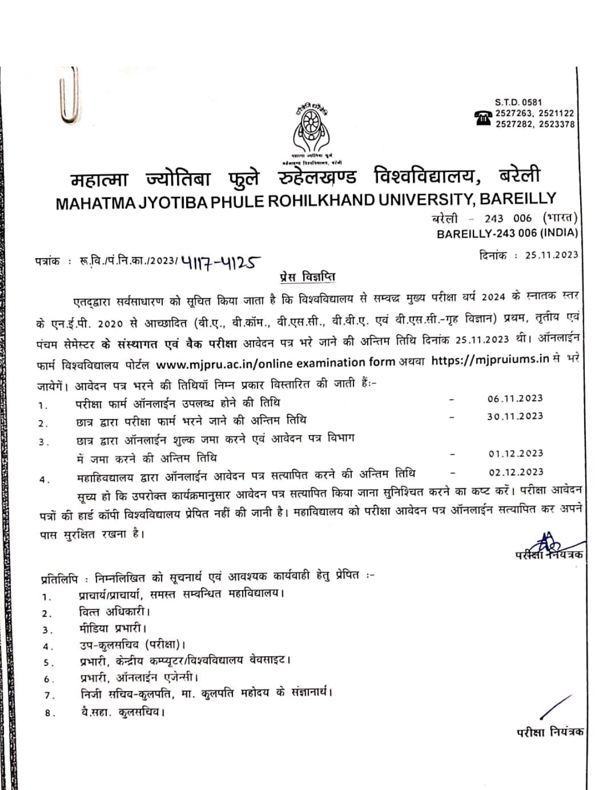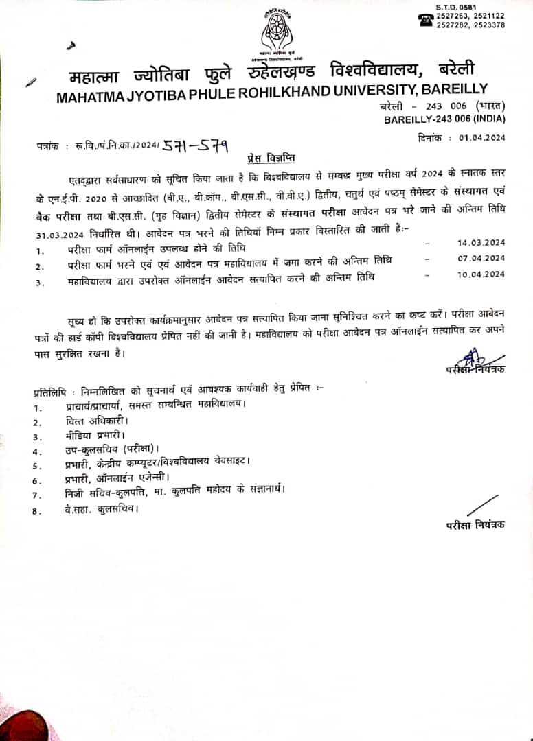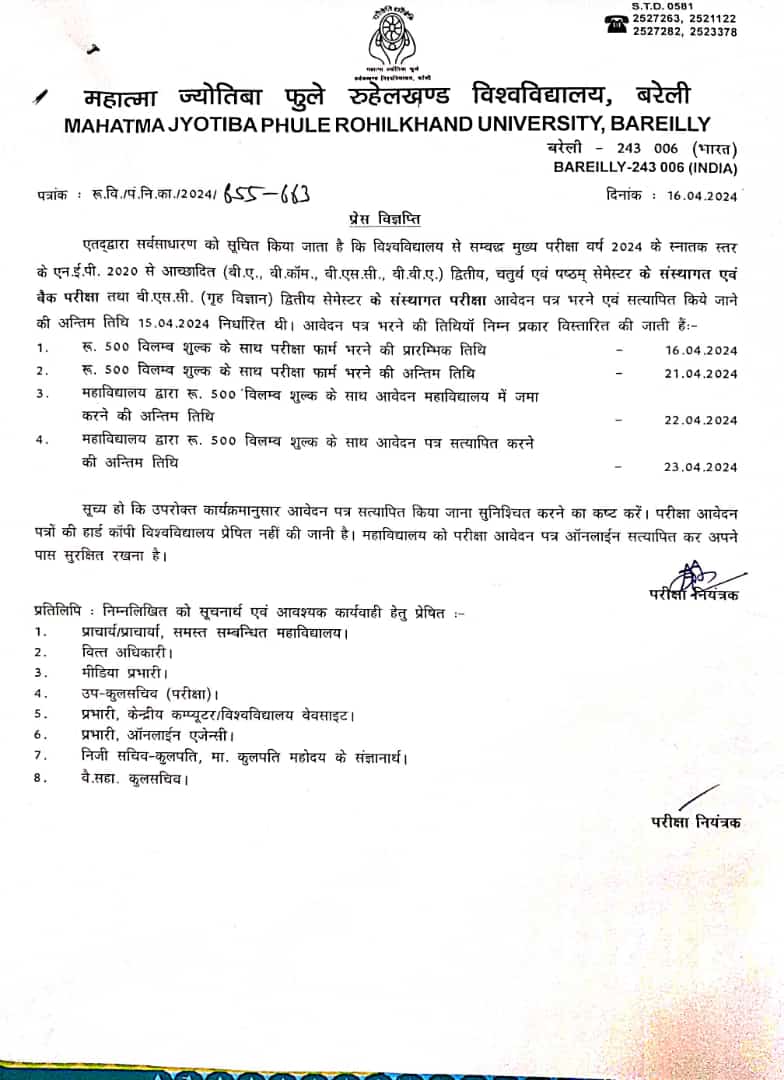 Read More...BA BSC BCOM 1 semester Exam form date extended