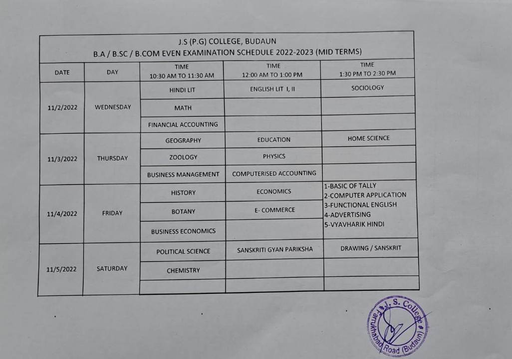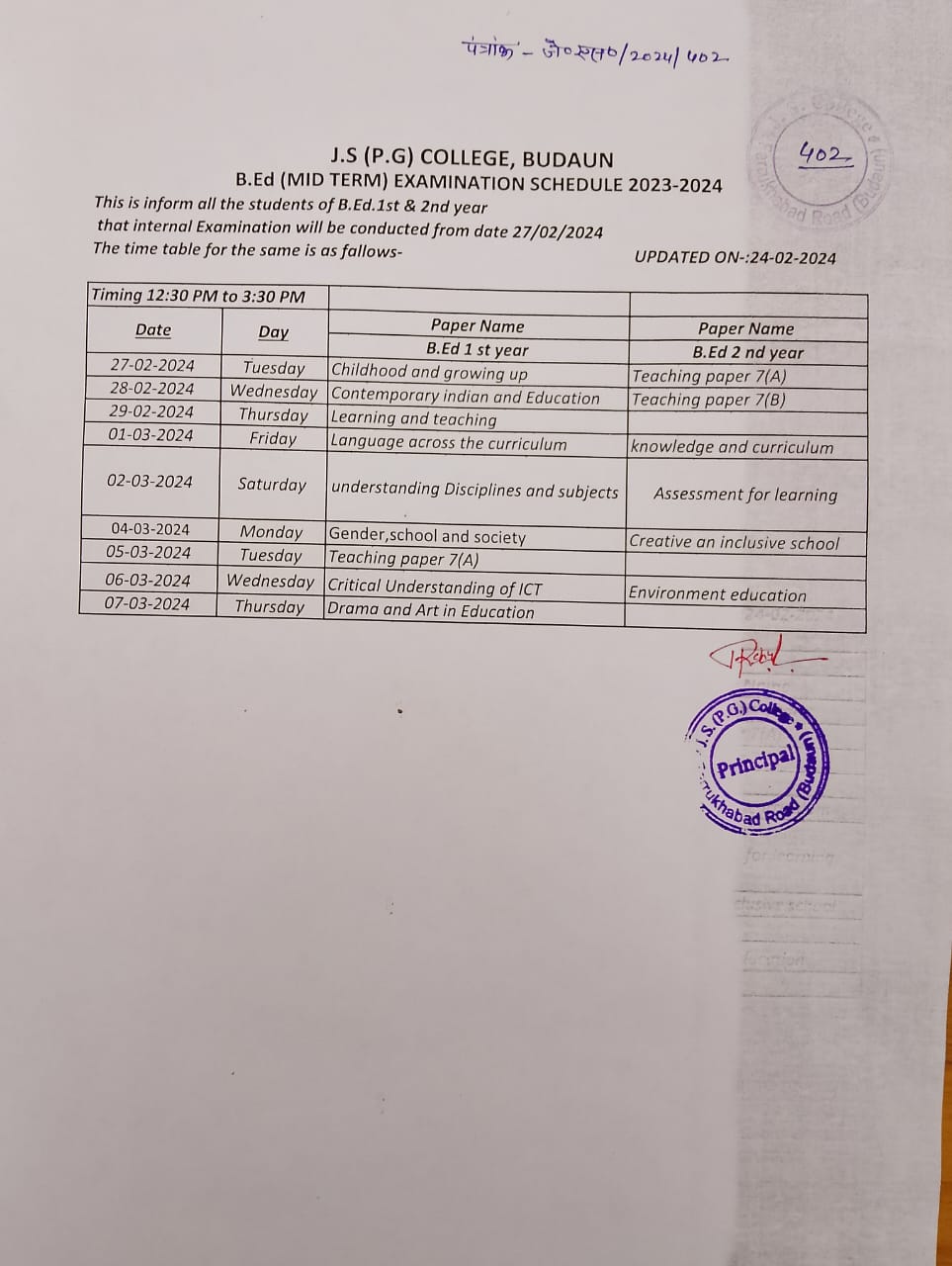 Read More...B.ED 1ST&2ND YEAR MID TERM EXAM and BA BSC BCOM VOCATIONAL/MID TERM EXAM schedule