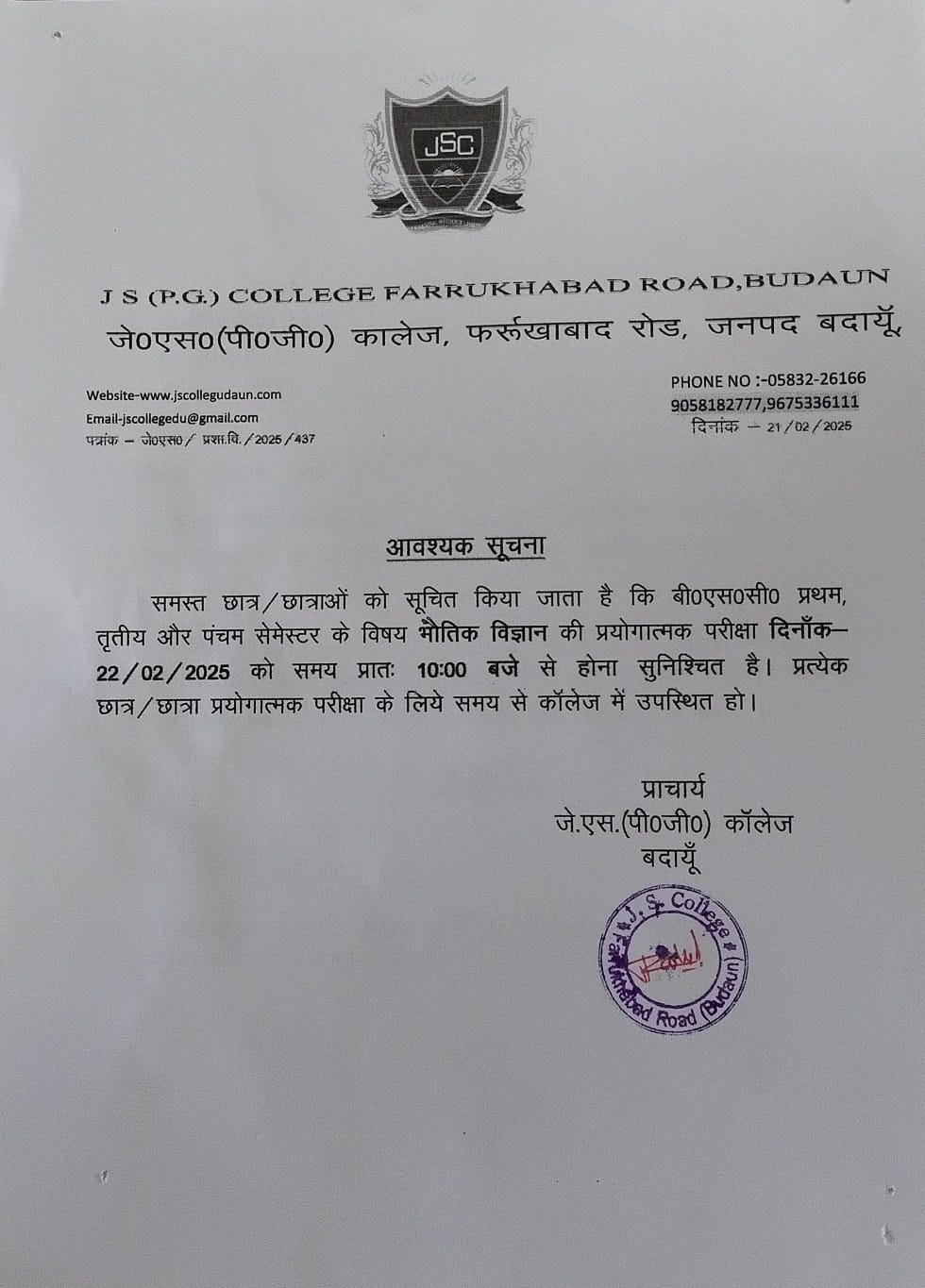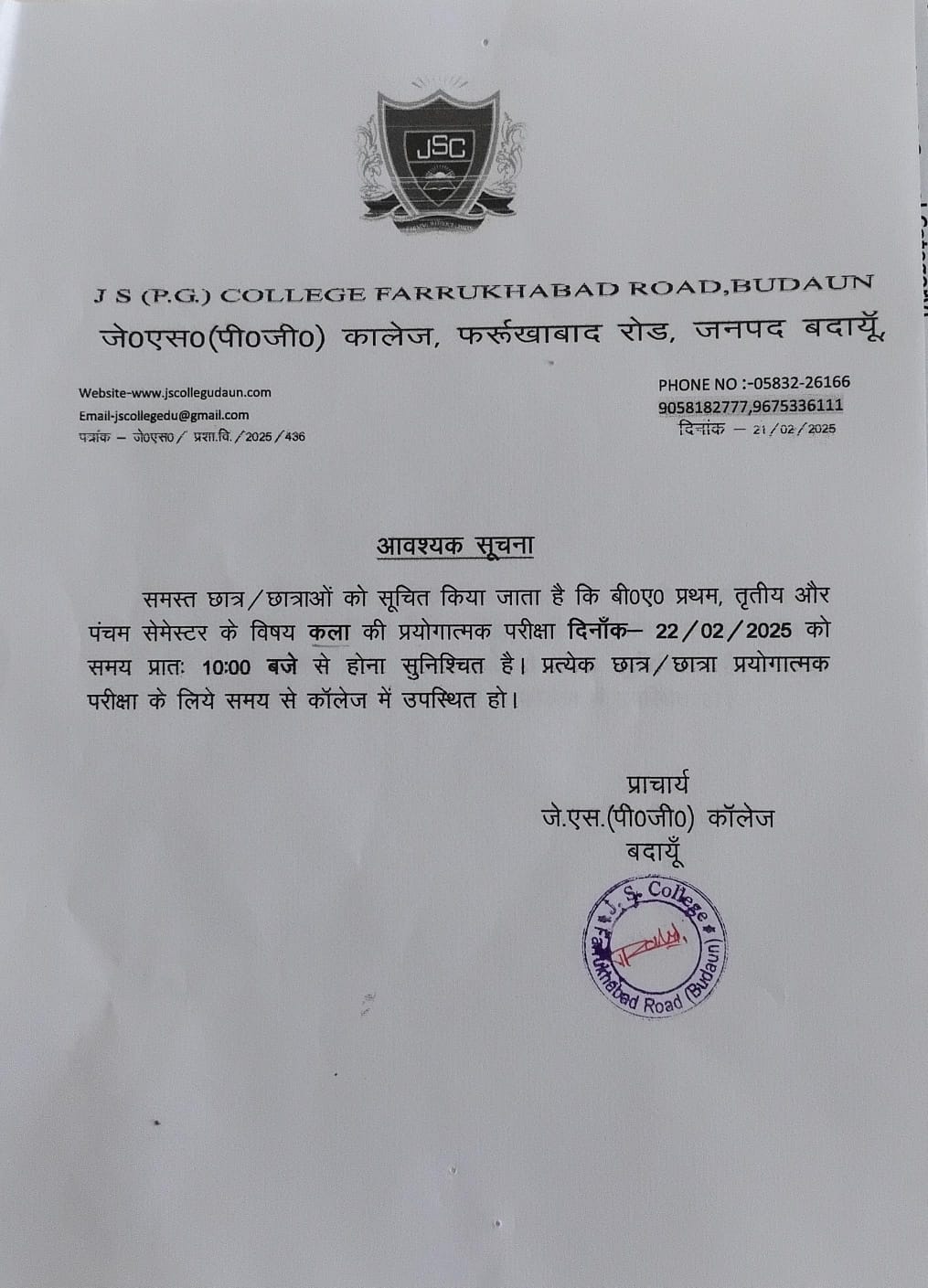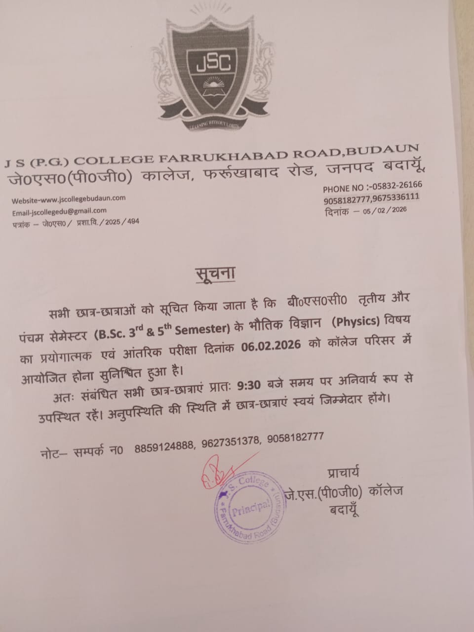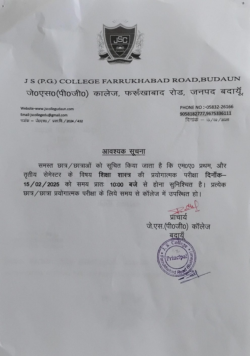 Read More...Education 1,3,5 semester practical/viva on 15/02/2025