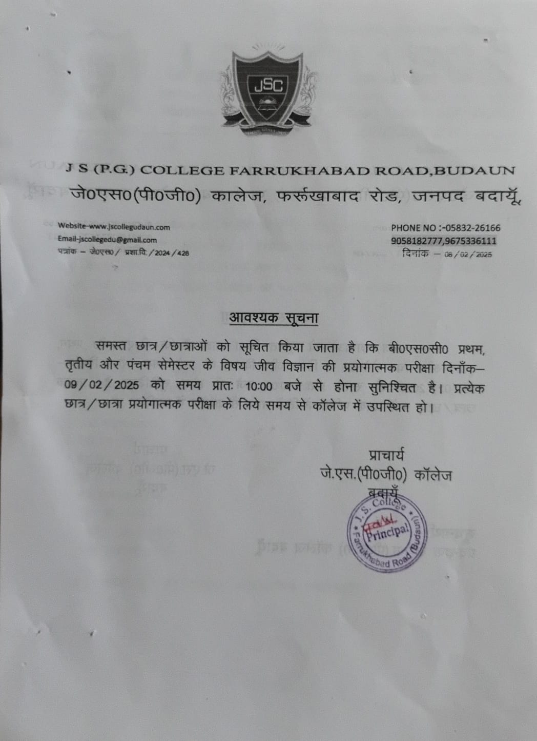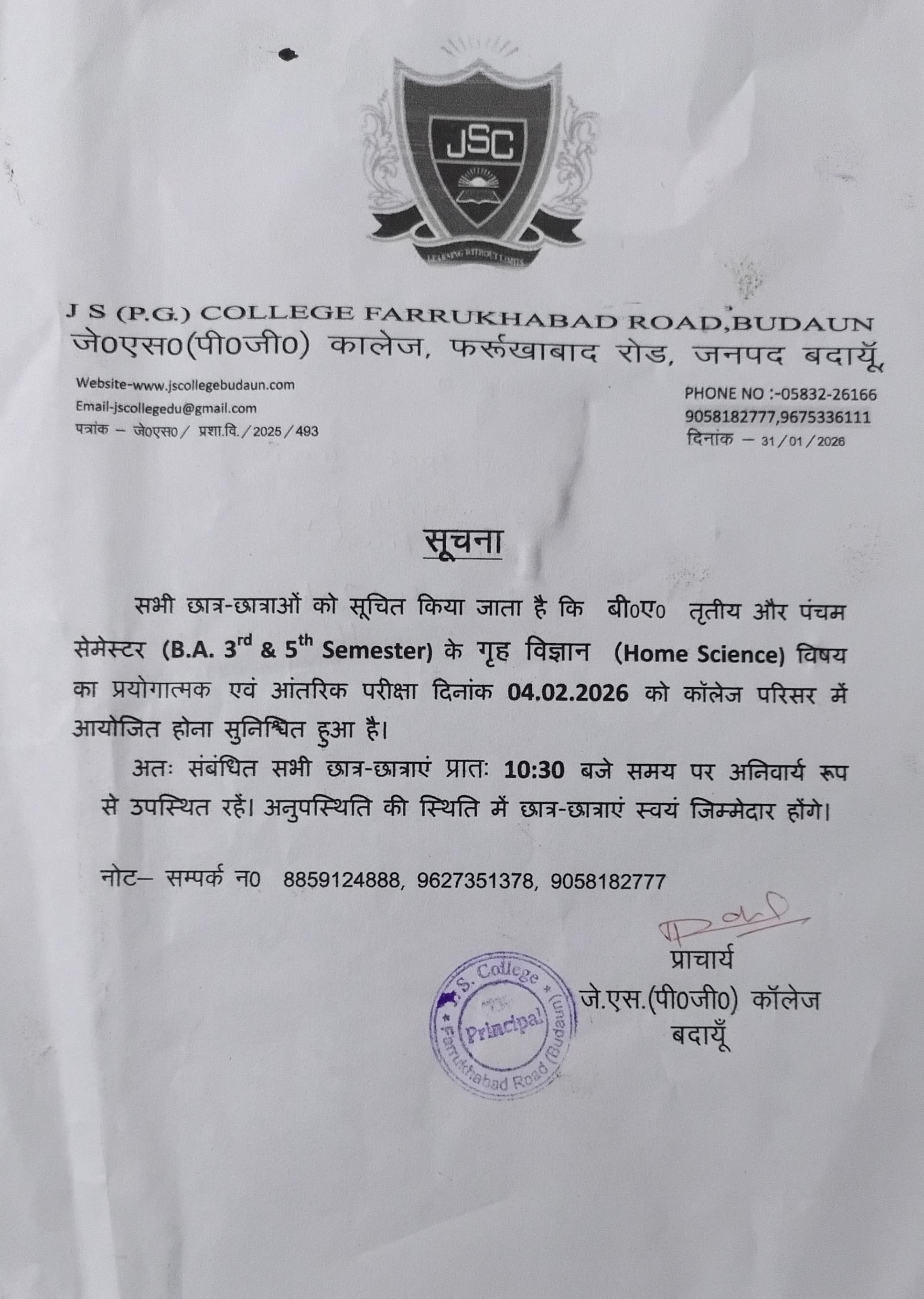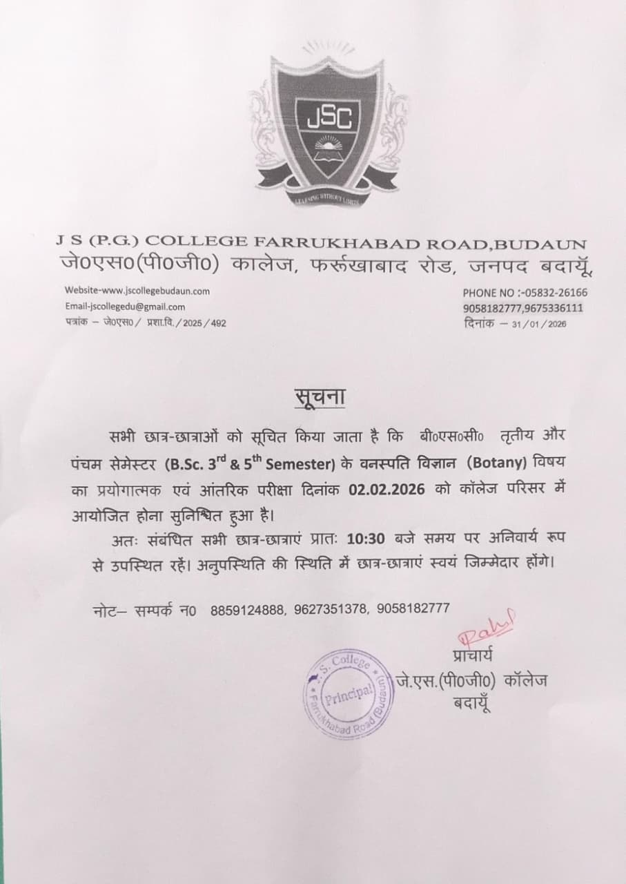 Read More...Education 1,3,5 semester practical/viva on 15/02/2025