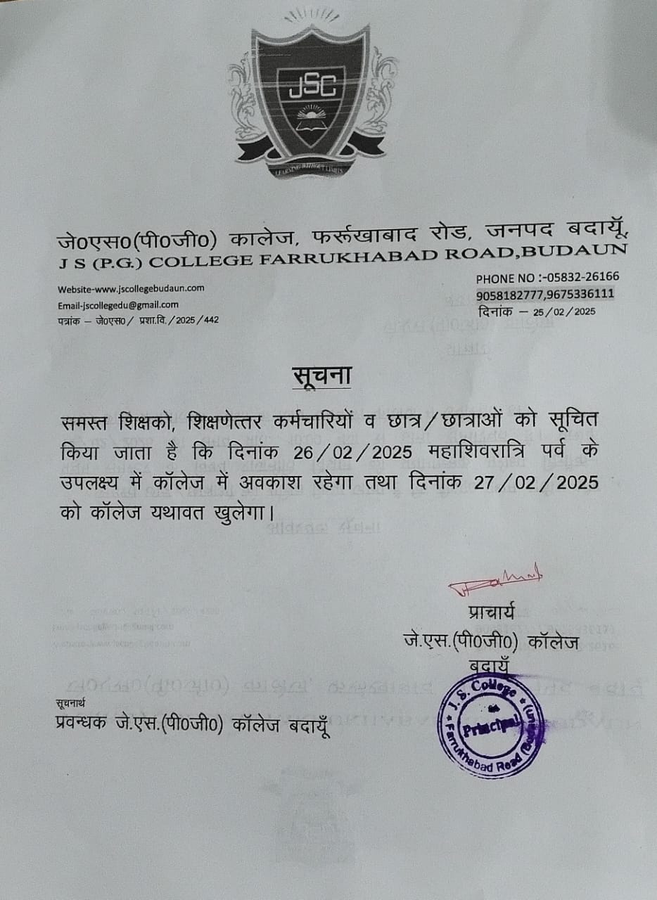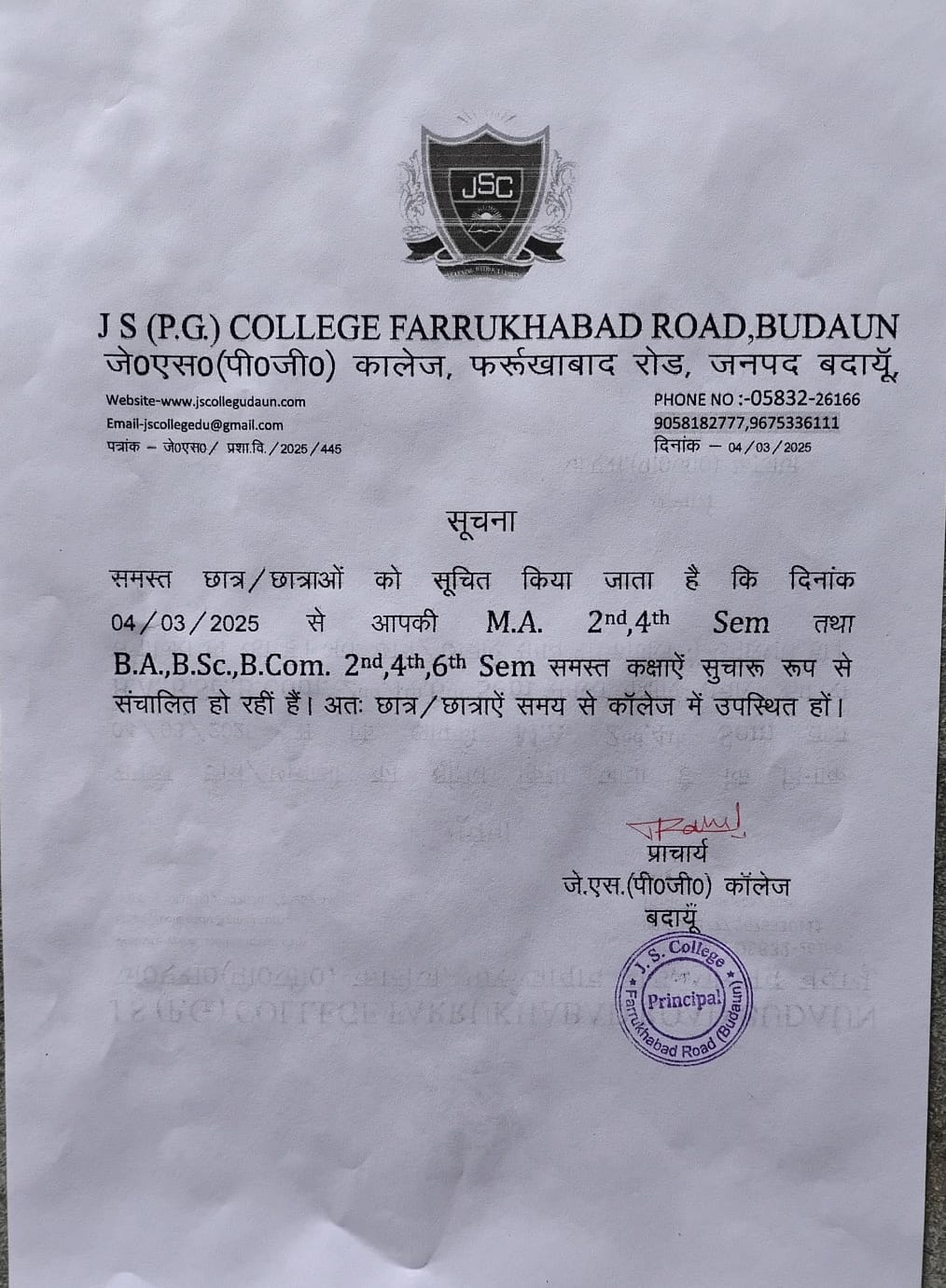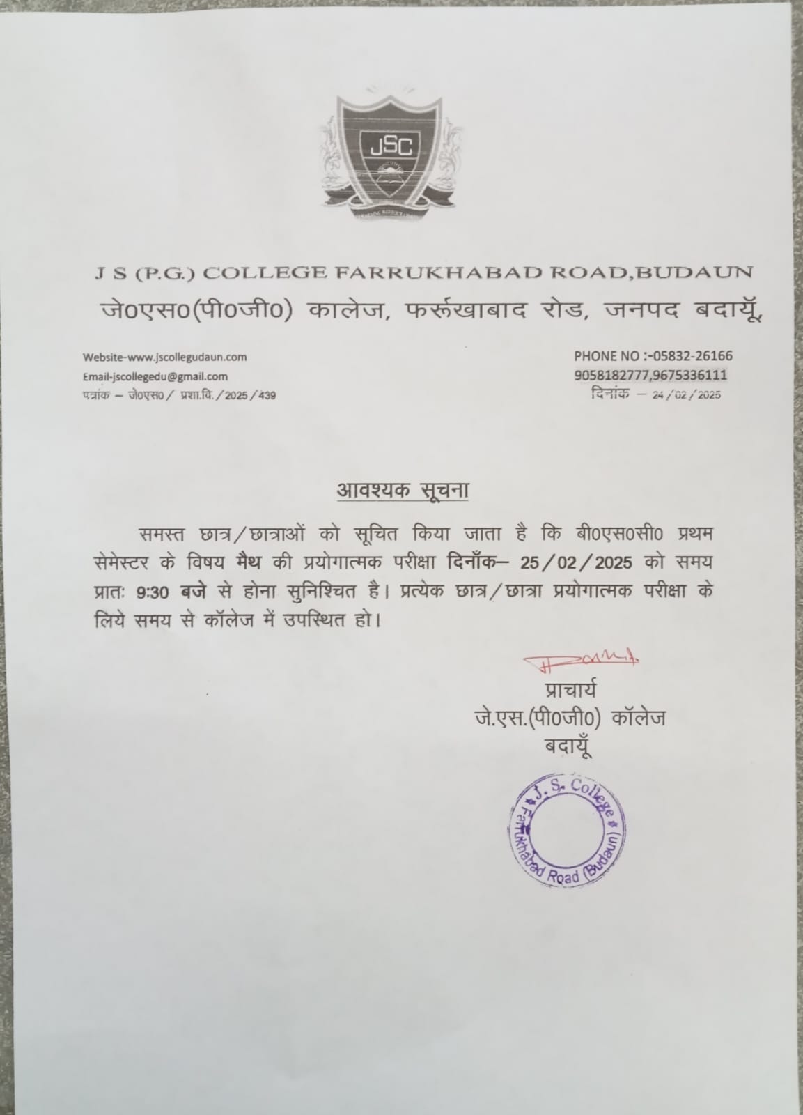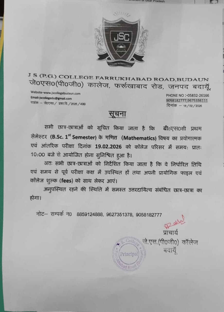 Read More...Education 1,3,5 semester practical/viva on 15/02/2025