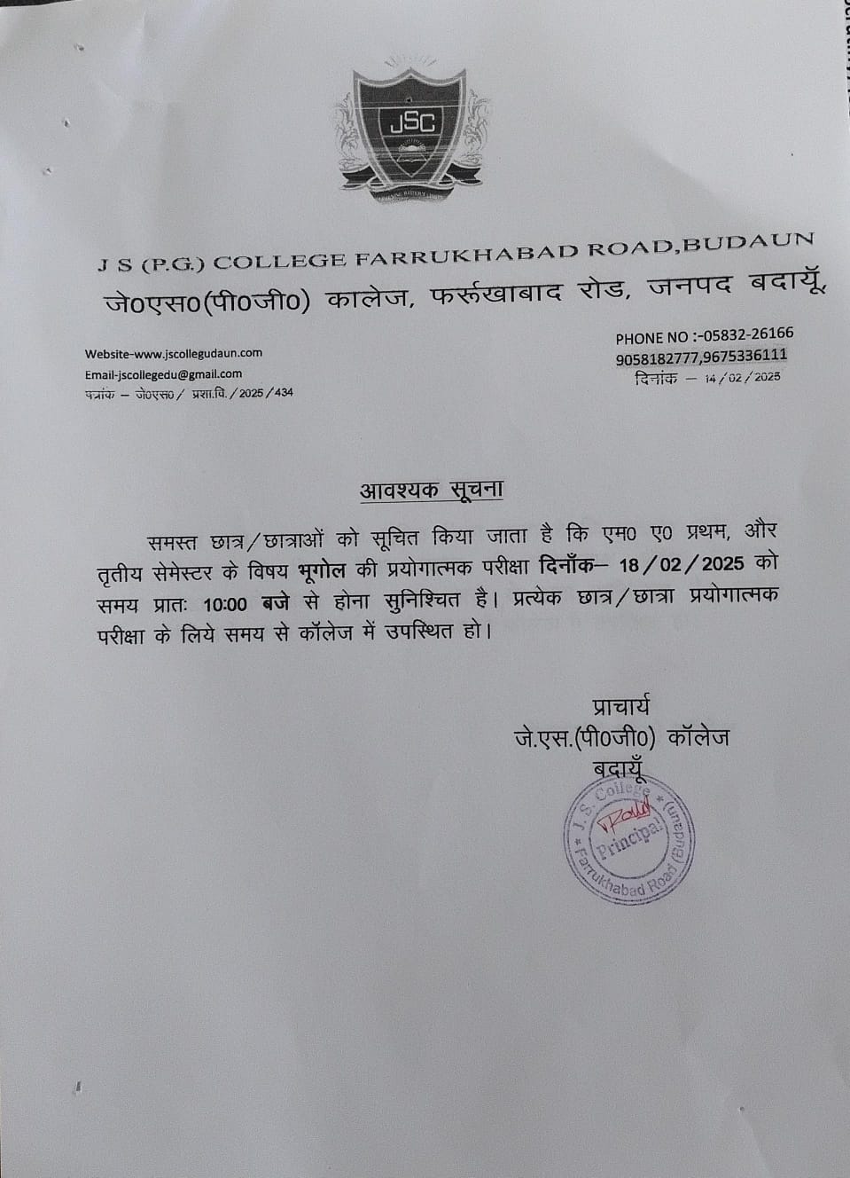 Read More...Geography 1,3,5 semester practical/viva on 18/02/2025