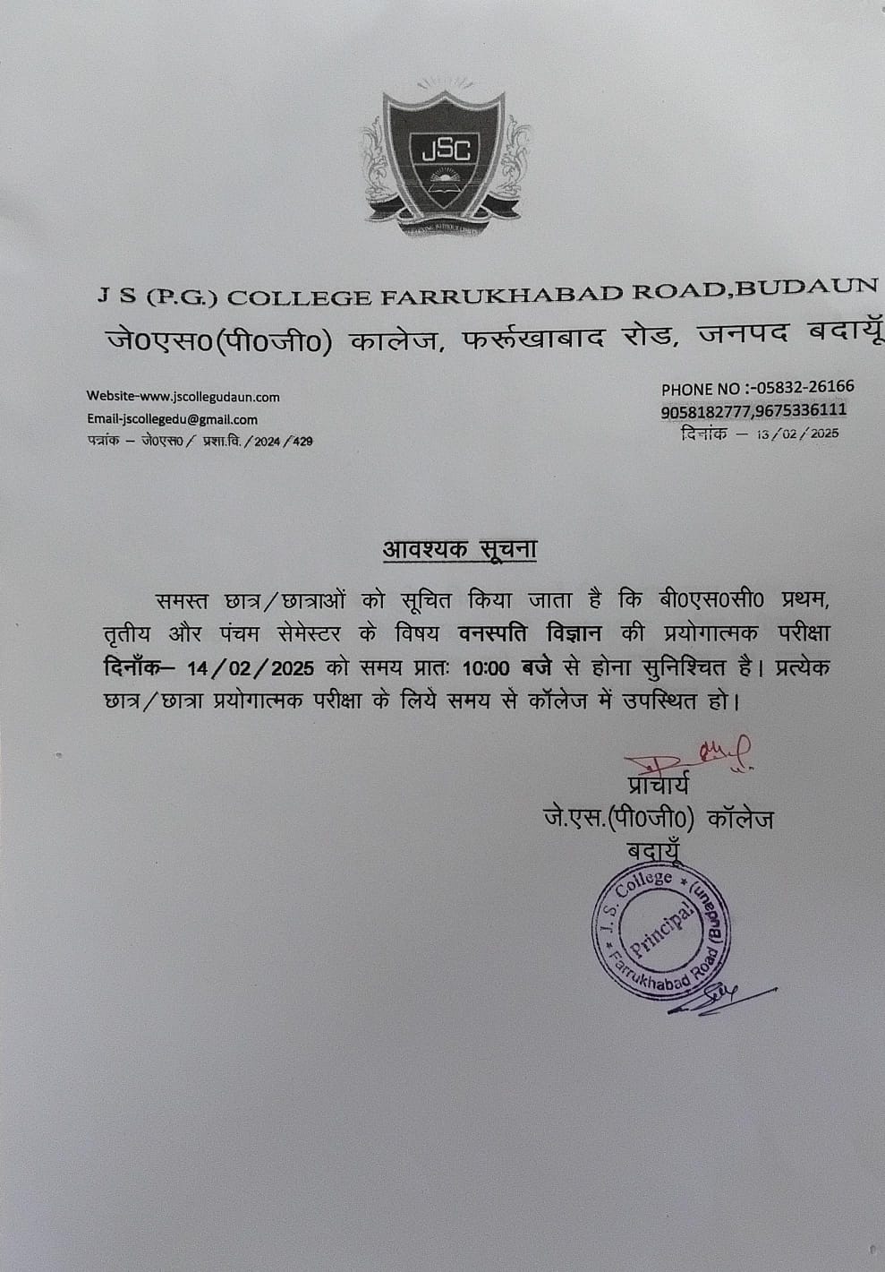 Read More...Botany 1,3,5 semester practical/viva on 14/02/2025