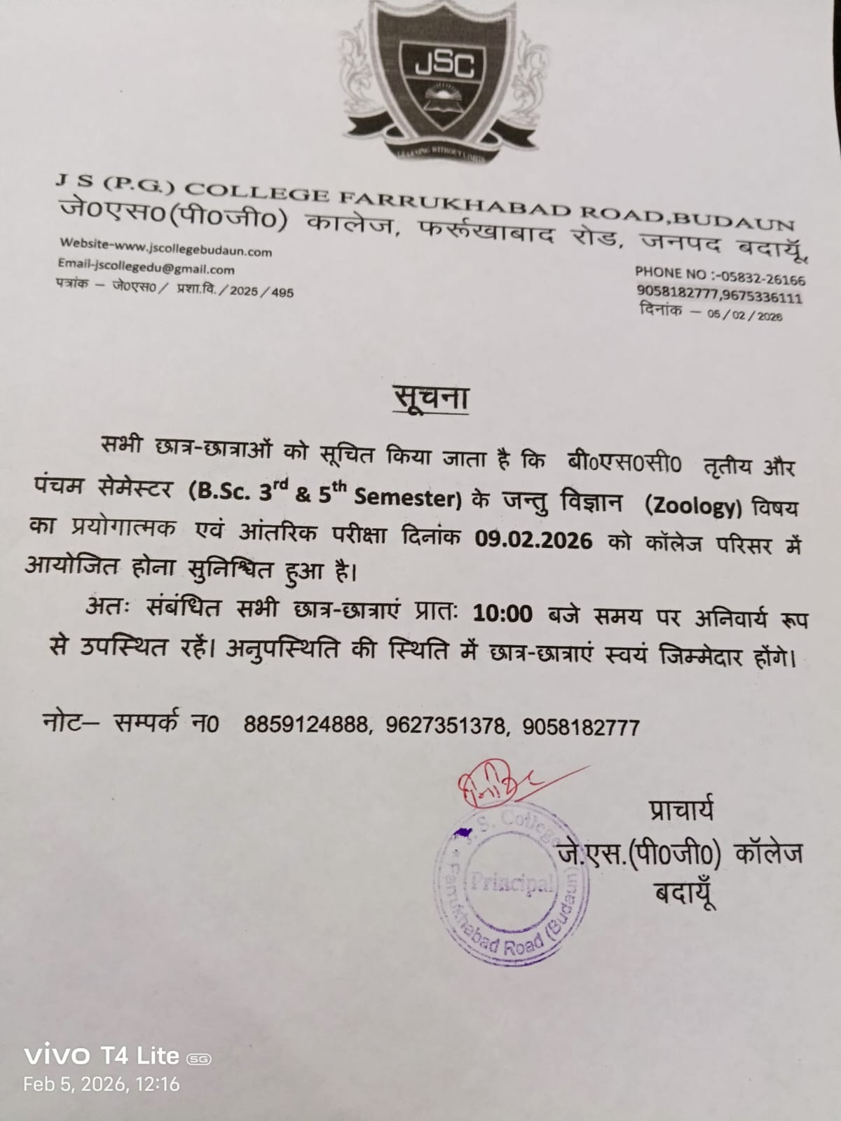 Read More...Zoology 1,3,5 semester practical/viva on 09/02/2025