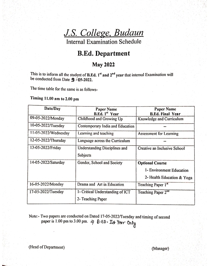Read More...B.ED 1ST&2ND YEAR INTERNAL EXAM SCHEDULE
