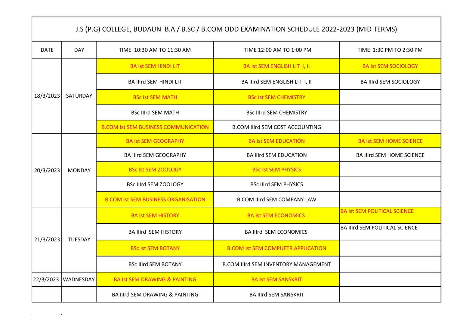 Read More...Mid term exam 1st&3rd semester exam schedule