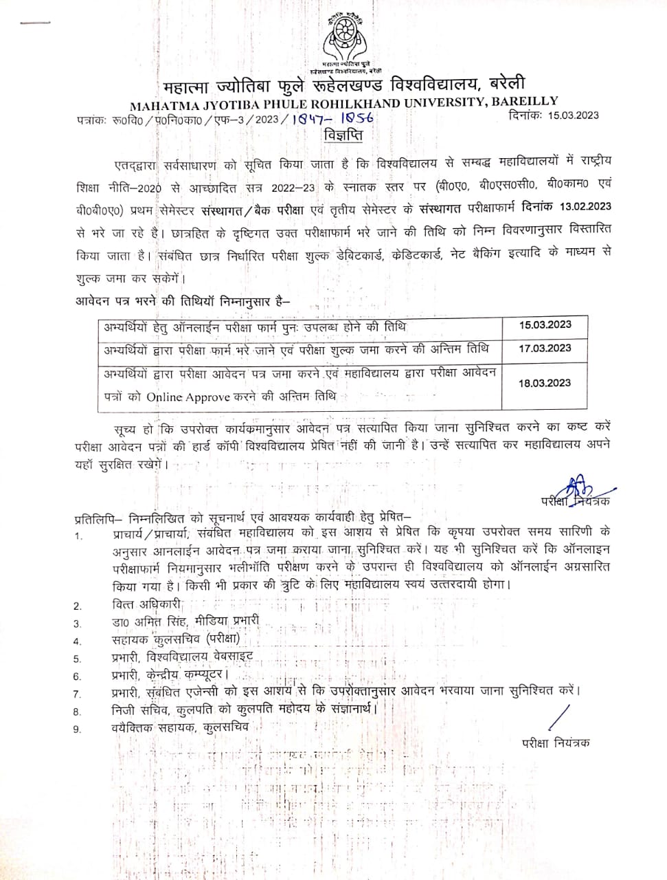 Read More...BA BSC BCOM ADMISSION 2023 date extended