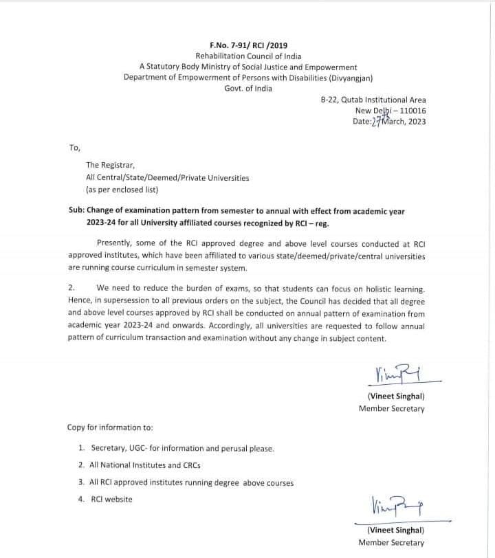 Read More...Change examination pattern from semester to annual with effect from academic year 2023-2024